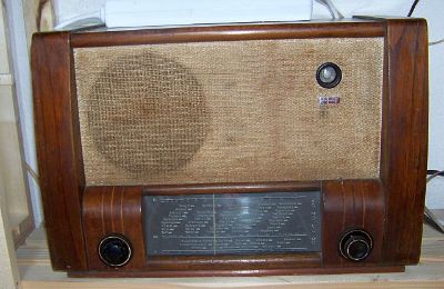 Ein Radio aus dem Jahr 1949/50 welches in der Technik einem Vorkriegsmodell entspricht. Viele Leute hatten noch kein Geld, so mussten Radios her die günstig waren. Genau da gleiche Model gab es schon 1939/40!