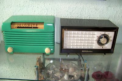 Links auf dem Bild ein Radio von Montgomery Ward aus dem Jahr 1949. Links ein RCA Victor von 1954. Beide Geräte haben nur Mittelwelle.